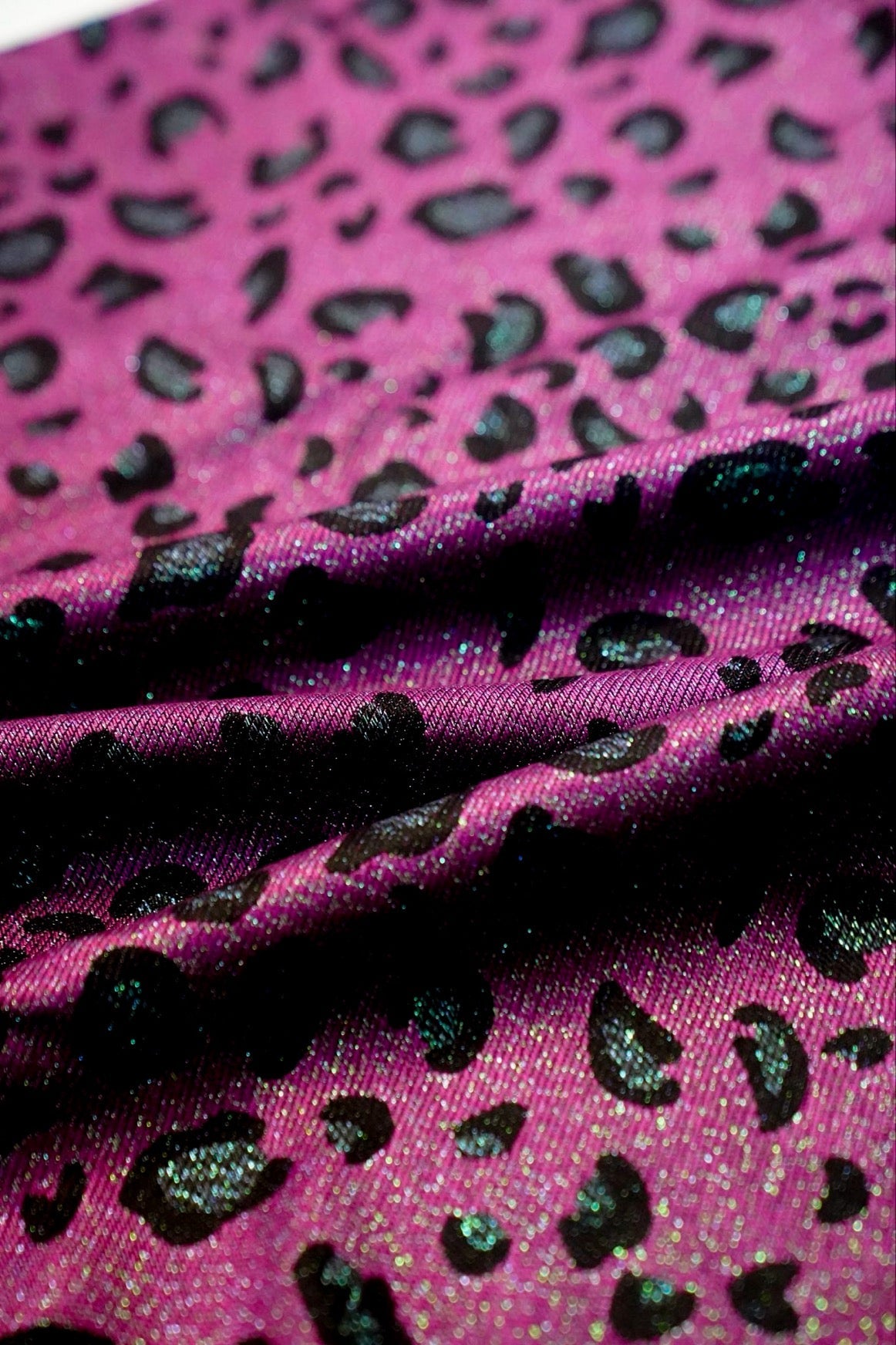 Seidig, fließender Stoff und angesagter Leopardenprint in leuchtendem Pink der von funkelnden grünen Glitzerfäden durchzogen ist. Diese Babytrage wird dein Herz höherschlagen lassen - das ist Safari Caspar!