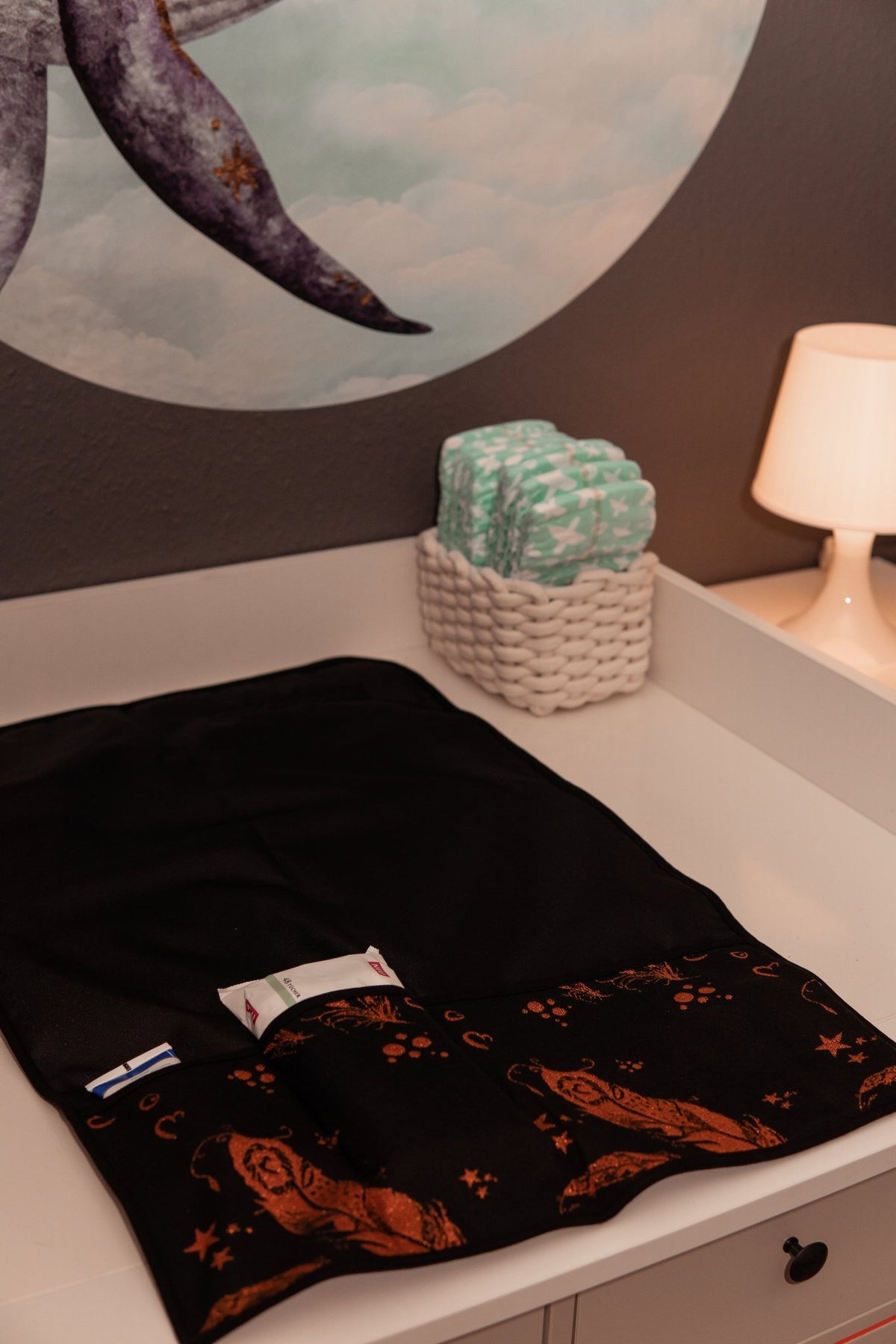 Hergestellt aus hochwertigen, wasserabweichenden Materialien sorgt die KOKADI Wickelunterlage für einen sicheren und hygienischen Wickelplatz für dein Baby. Die Unterseite aus KOKADI Tragetuchstoff sorgt für Stabilität. Dazu hat die Wickelunterlage praktische Aufbewahrungsfächer für alle wichtigen Utensilien die ihr beim Wickeln benötigt.