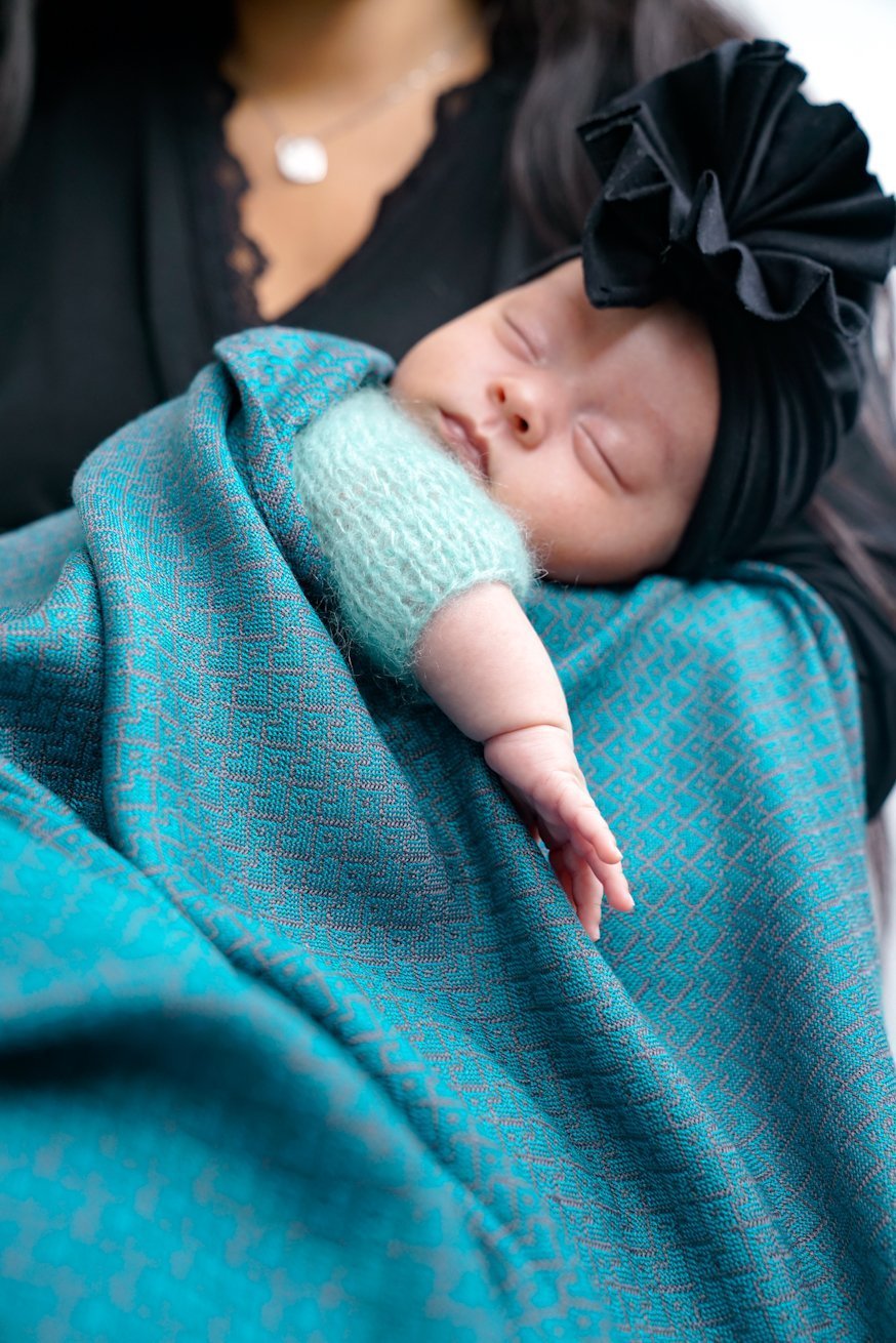 Perfekt, wenn du die Babytrage mit deinem Partner teilst! Unten Schnell geklckt, oben nichts verstellt - einfach anlegen, knoten, fertig!