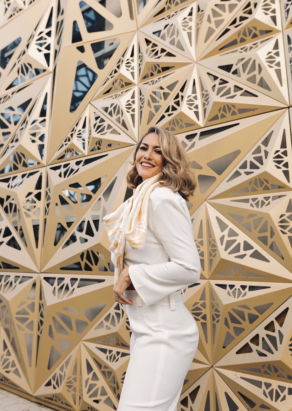 Mit goldenem Glitzergarn sind verschiedene geometrische Formen eingewebt, die das Auge deines Babys faszinieren und das Kuscheltuch in sanftem Creme-Weiß absolut einzigartig machen.