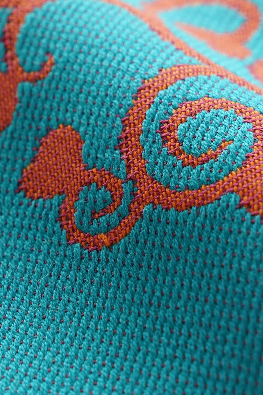 Das Tuch ist etwas ganz besonderes und traumhaft schön! Die Motive sitzen perfekt und die Seide macht es anschmiegsam trotz des hohen Flächengewichts